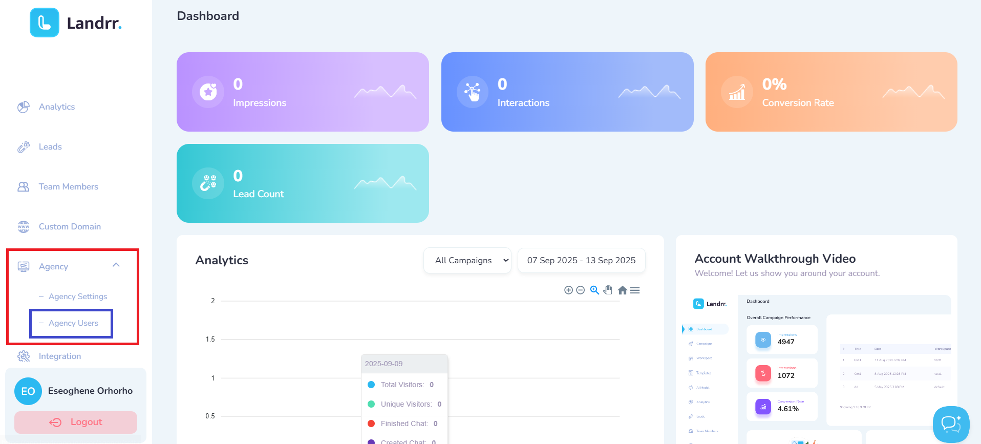 From the dashboard, scroll down the left menu and click on Agency, then click on Agency User.