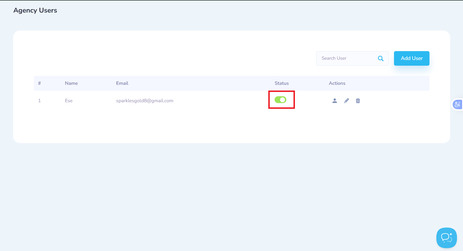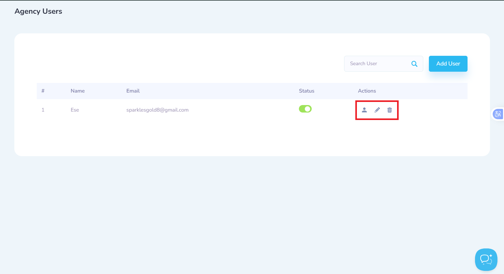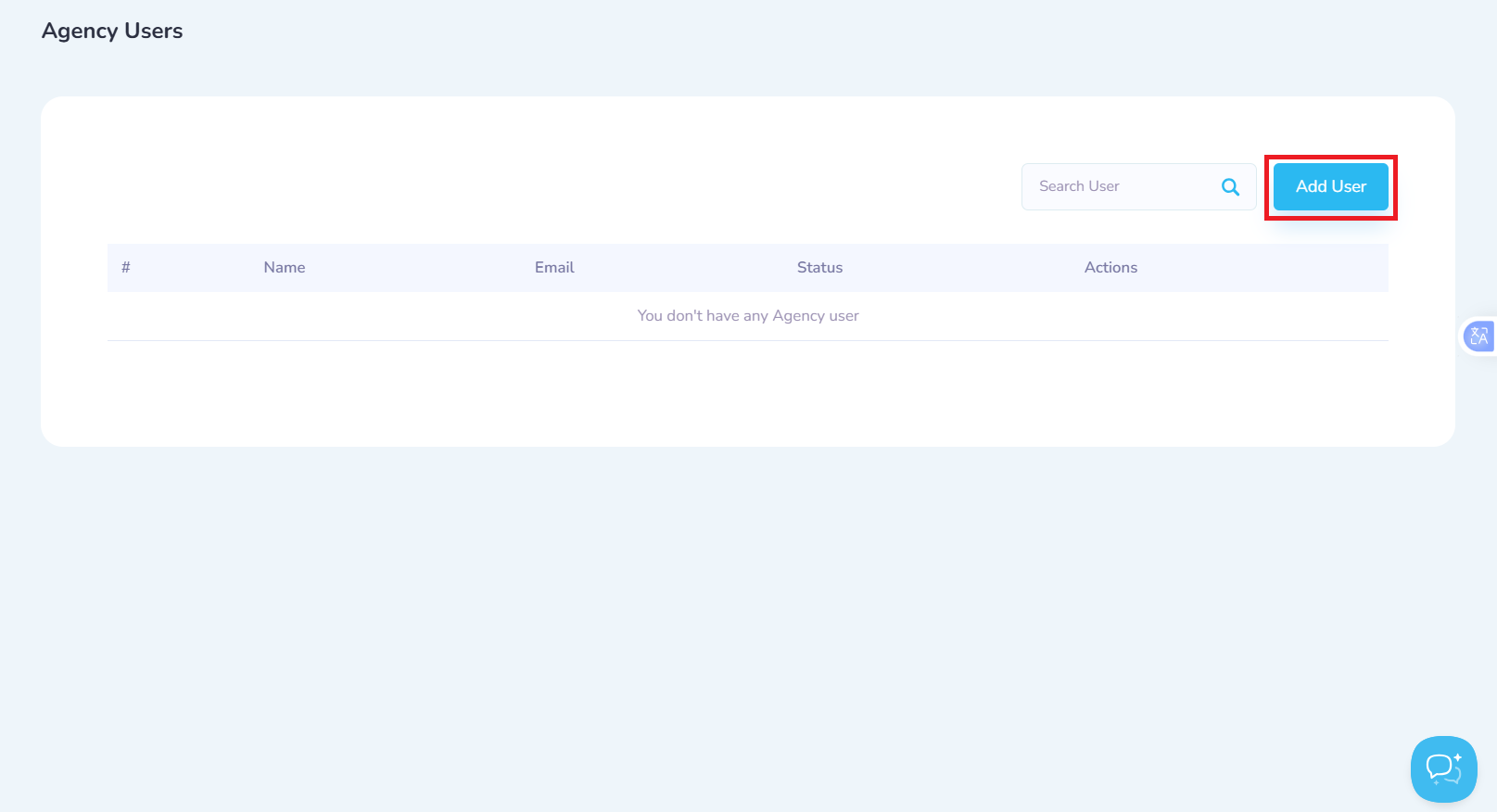 Click on the add Add User button to add a an Agency user.