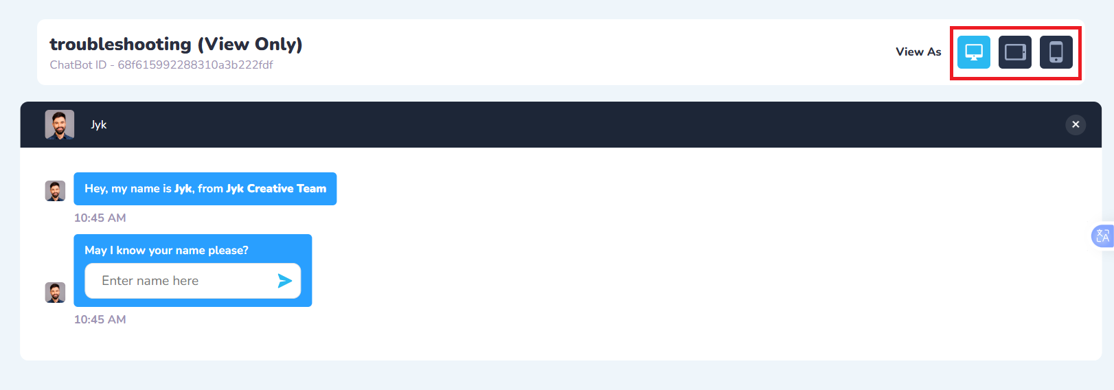 After setting up your chat appearance, click the Preview button at the top right corner of the page to preview your campaign