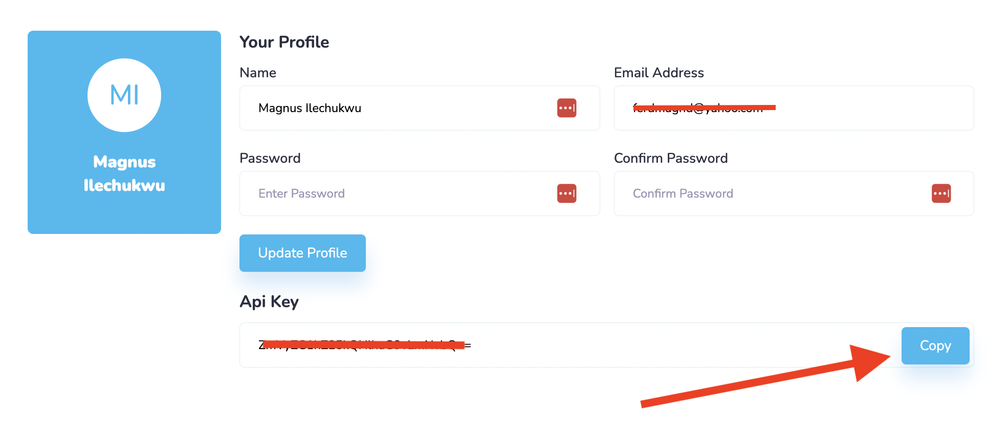 On the dialogue box that pops up asking for an API Key, paste the copied API Key into the provided entry box and click on the Continue button to authorize the connection.