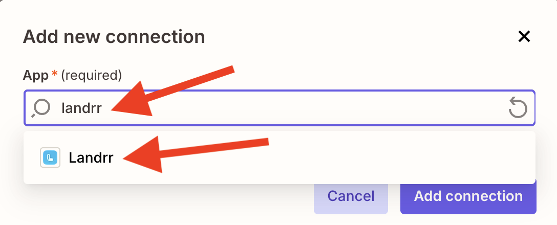 Now head over and log into your Zapier account. Go to Apps, and then search for Landrr, and click on it.